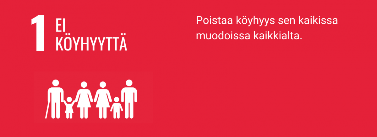 Ensimmäinen esittelemämme tavoite on tavoite poistaa köyhyys sen kaikissa muodoissa kaikkialta. Tavoite on suuri ja koskee sekä kutakin YK:n jäsenvaltiota että laajemmin koko maapallon väestöä. Keskityn tässä artikkelissa lapsiperheköyhyyden vähentämiseen Suomessa.