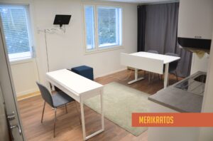 Tilaa voi käyttää esimerkiksi hiljaiseen työskentelyyn tai videoneuvotteluihin. Tilassa on kaksi työpöytää ja kolme tuolia sekä vesipiste. Tässä tilassa on myös terveydenhuollon luvat, eli tila täyttää asiakas- ja potilasturvallisuuden vaatimukset.