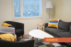 Tilassa on sohva ja kolme nojatuolia (max. 6 hengelle).