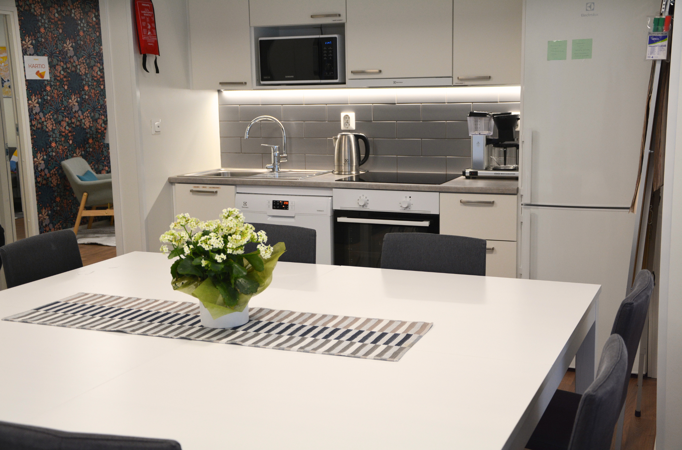 Aavassa järjestät isommankin kokouksen. Tilassa on keittiö ja suuri sohva, suuri pöytä, 10 tuolia, kaksi lasten tuolia sekä jakkaroita (max. 15 hengelle).